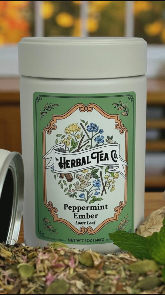 Our Peppermint Ember is a spirited fusion of cool mint and warming spice, crafted to awaken the senses and soothe the soul. Peppermint leads with a brisk clarity, while ginger and cinnamon add a gentle heat that glows like embers on a chilly evening. Cardamom and fennel lend aromatic depth, balanced by the soft sweetness of licorice and lemon balm. Burdock root grounds the blend, and cornflower petals offer a final flourish of color and calm.